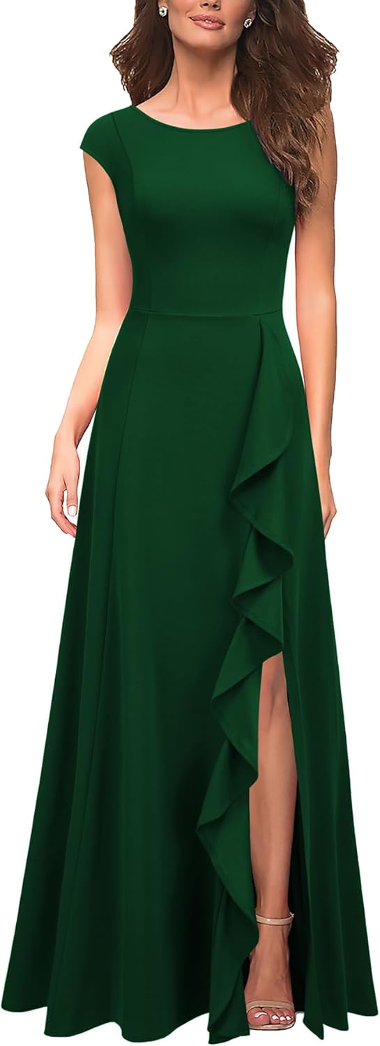 MUSHARE Women's Cocktail Dresses with Pockets Ruffled Sexy Split Party Long Formal Dress