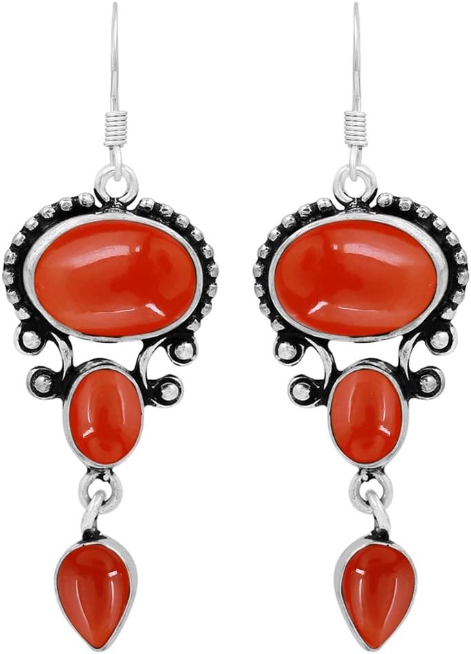 Natural Gemstones Dangle Earrings for Women - 925 Silver Plated Lightweight Dangle & Drop Handmade Jewelry Earrings - Gifts for Mother's Day, Anniversary, Christmas, Valentine's Day