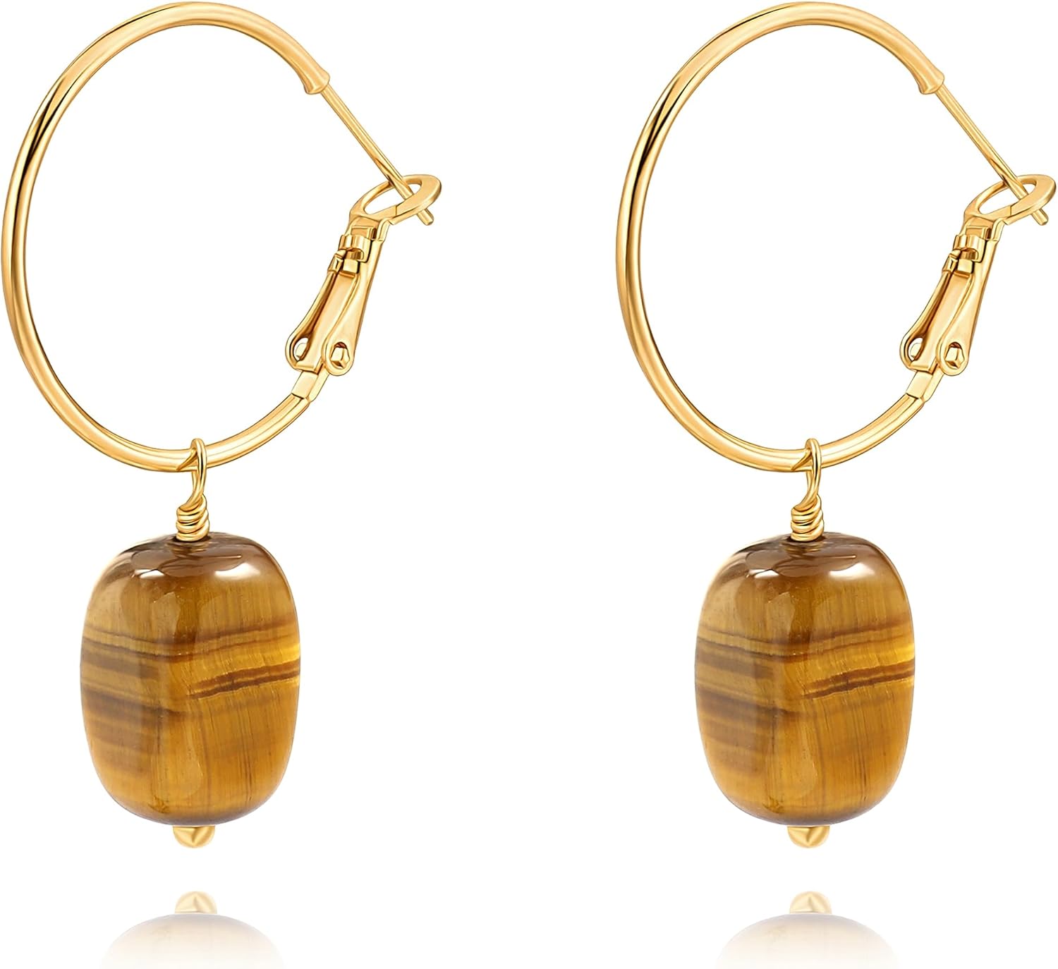 Gold Huggie Hoop Drop Dangle Earrings Turquoise Beads Gemstone Earrings Boho Handmade Lightweight Jewelry for Women