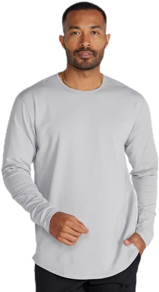 BYLT Men's Drop-Cut Long Sleeve – Plain Crewneck Shirt for Men – Soft Polyester, Cotton, Spandex Blend – Wrinkle Resistant