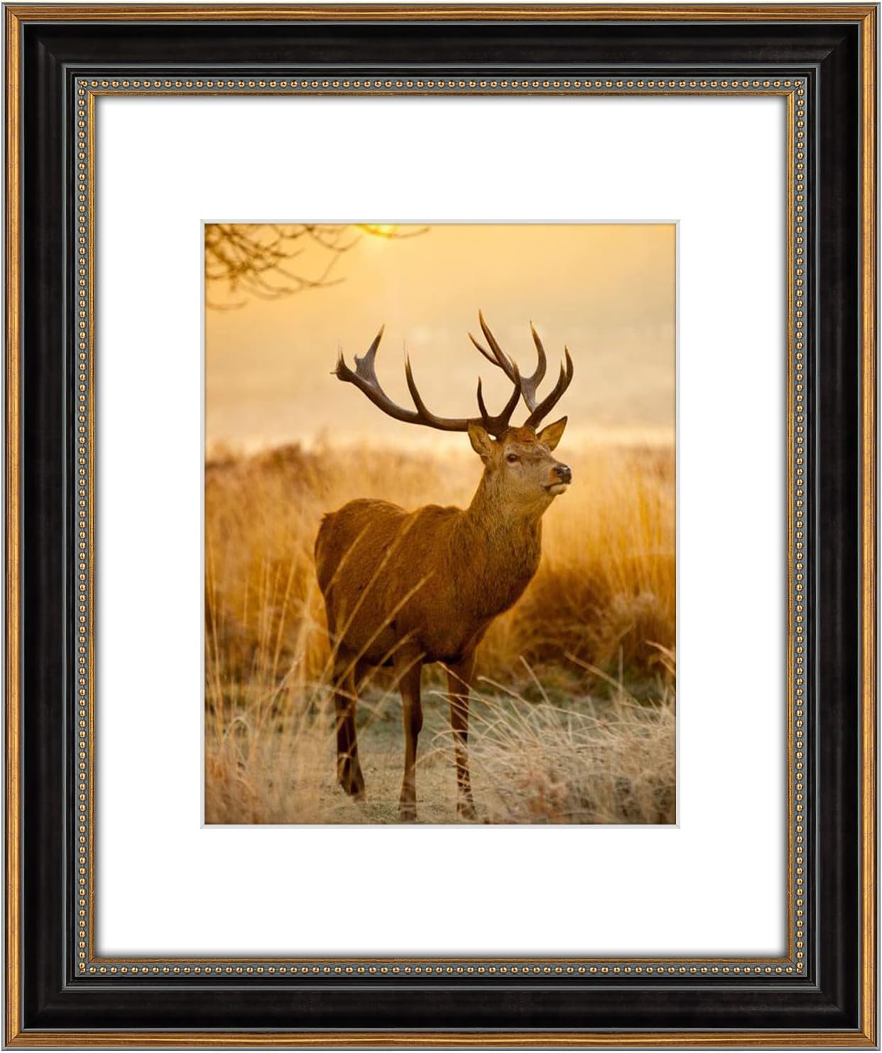 AUEAR,16x20 Picture Frame for 11x14 Photo With Mat or 16x20 Prints Without Mat,Vintage Style,Wall Mounting (Black and Ornate Gold)