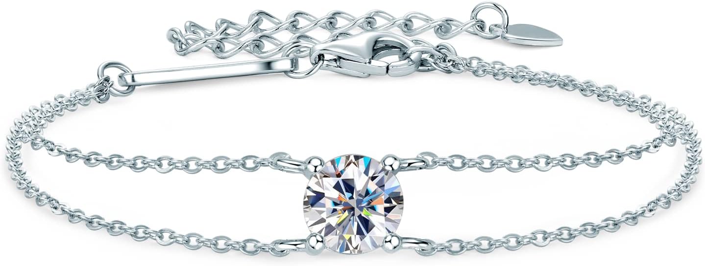 AINUOSHI Fine Jewelry Moissanite Bracelets Valentines Day Gifts for Women, 14K White Gold Plated 925 Sterling Silver Women Bracelet, Anniversary Birthday Gifts for Daughter Mom Wife