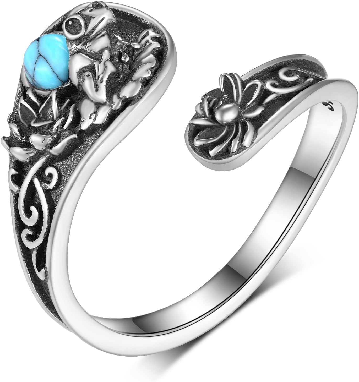 Frog Spoon Ring 925 Sterling Silver Frog Ring Lotus Open Rings Adjustable Thumb Rings Jewelry Gifts for Women