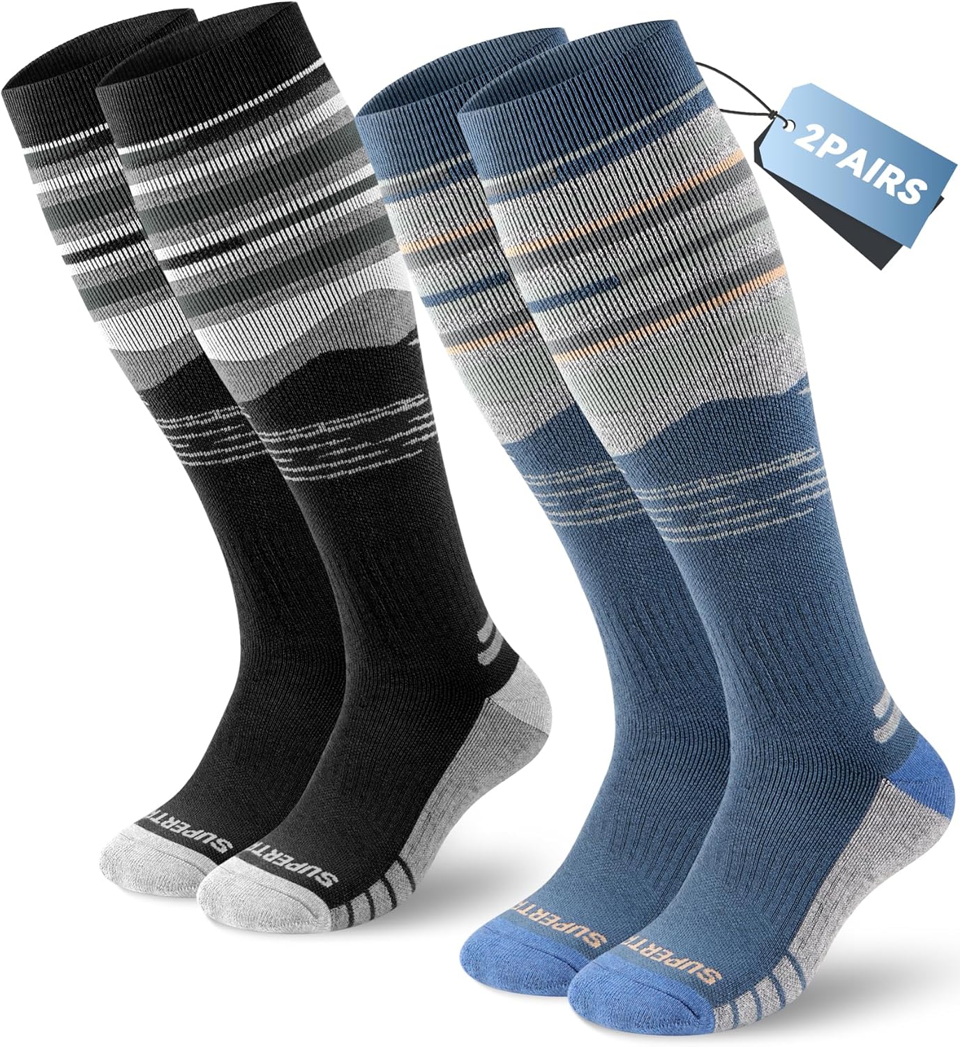 Supertrip 2 Pairs Merino Wool Ski Socks for Womens Mens, Full Cushion Thermal Winter Warm Thick Socks for Skiing Snowboarding