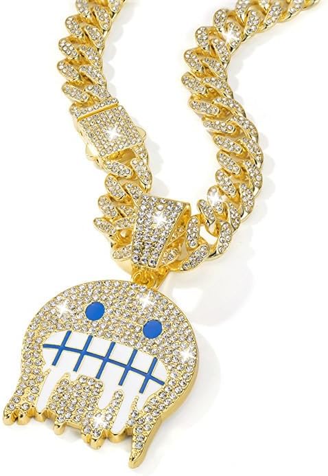Miami Cuban Link Chain for Men,Iced Out Chain -Gold/Silver Bling Diamond Pendant Hip Hop Jewelry