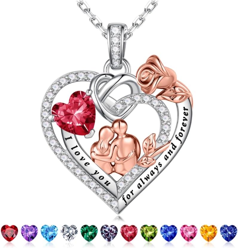 Iefil Birthstone Necklace for Women - 925 Sterling Silver Heart Necklace for Women, Anniversary Birthday Gifts for Wife Girlfriend Mom
