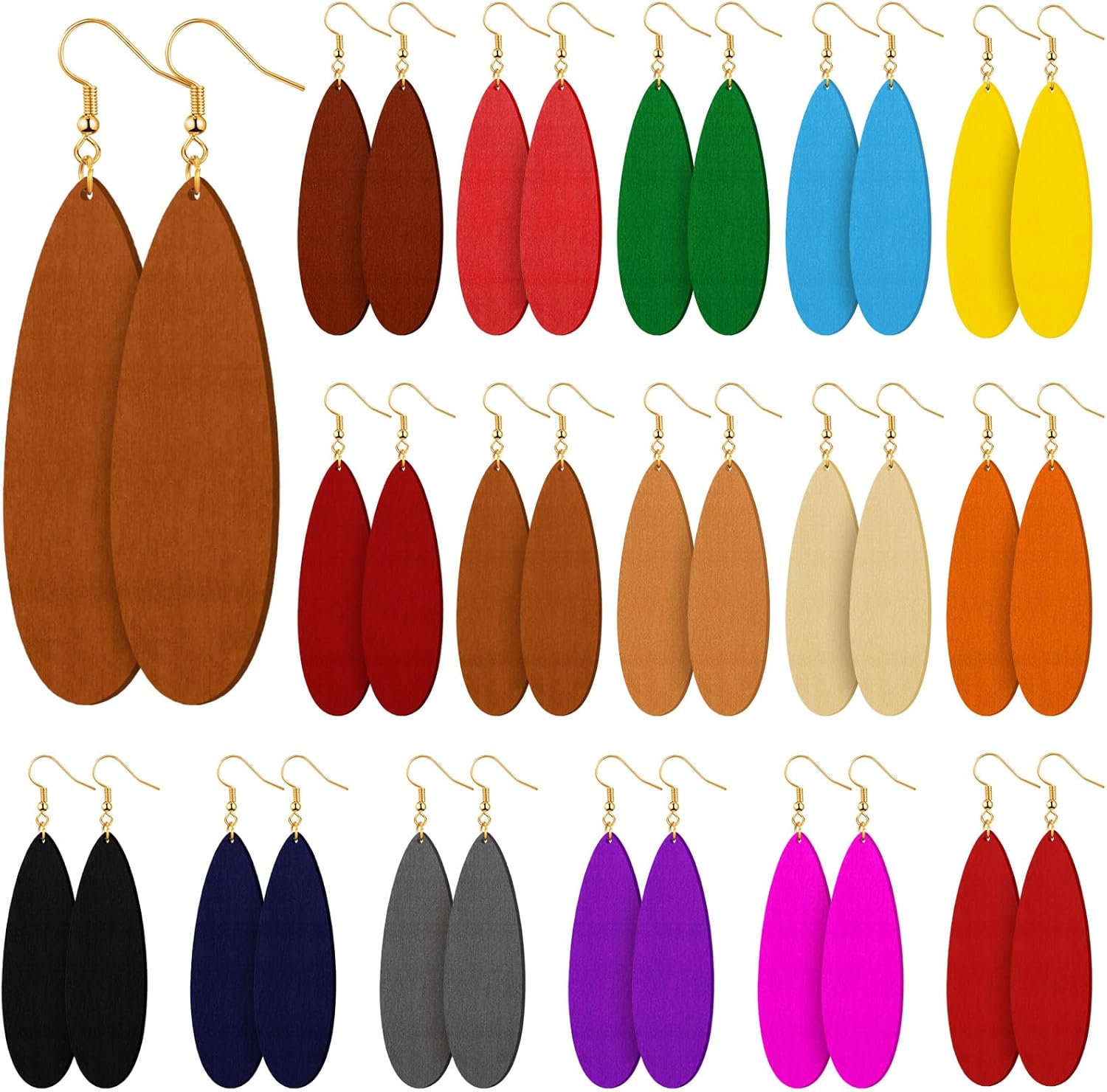 Ecally 16 Pairs Bohemian Wood Earrings Natural Wood Earrings African Jewelry Vintage Teardrop Dangle Eardrop for Women