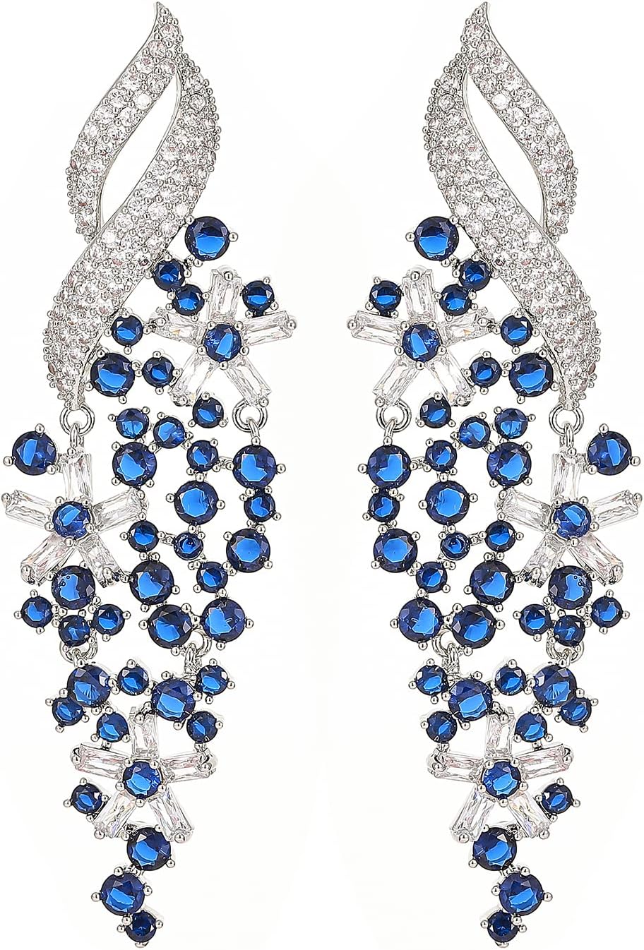 Zircon Gemstone Drop Dangle Earrings, Rhinestone Cluster Earrings Luxury Bridal Flower Fashion Jewelry, 18K Gold Plated 925 Sterling Silver Posts Sparkly Evening Dressy Earrings