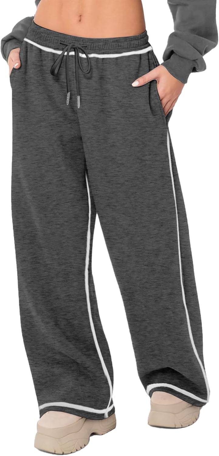 HDLTE Sweatpants Women Track Pants Soft Straight Pajama Sweats Wide Leg Women Lounge Pants Joggers