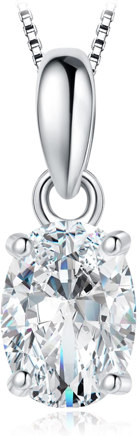 JewelryPalace Oval Cut 1ct 2ct Moissanite Solitaire Pendant Necklace for Women, Simulated Diamond 925 Sterling Silver 14k White Gold Plated Necklaces for Her VVS D-F, 18 Inch Box chain