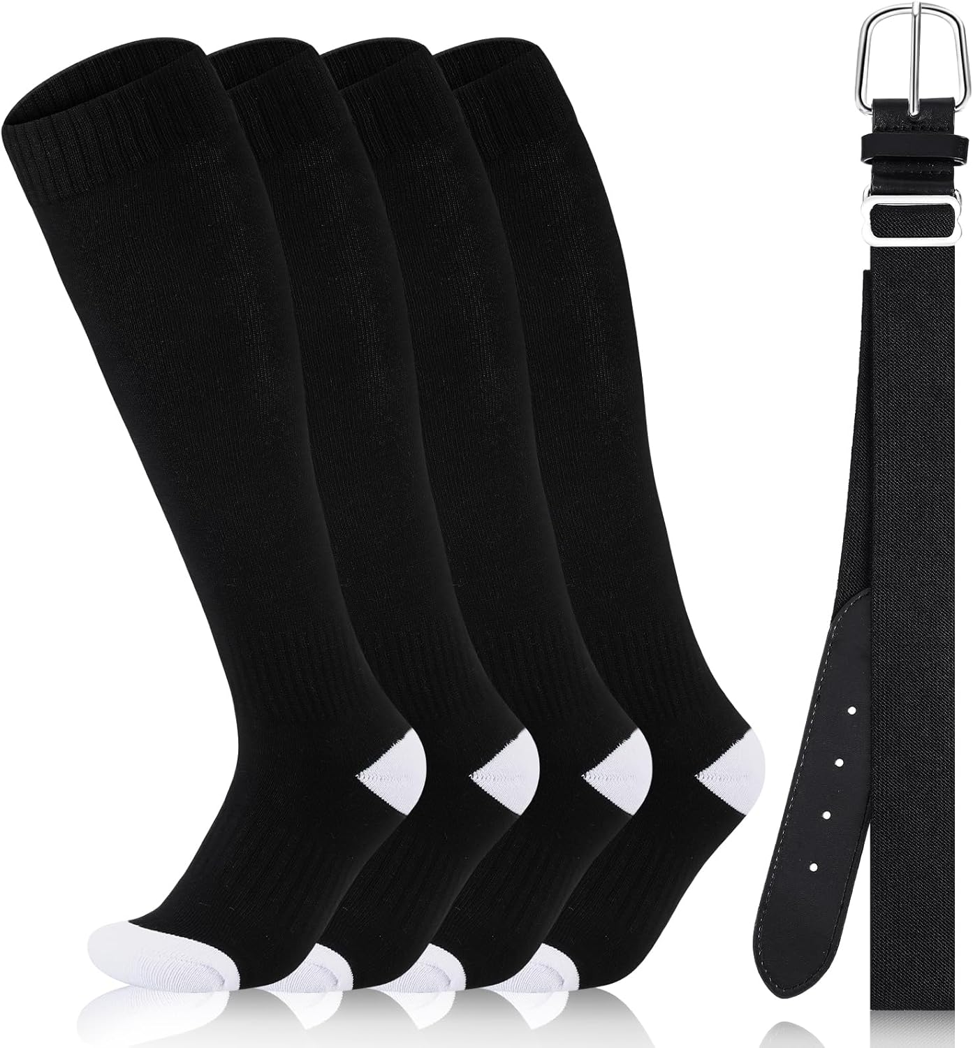 Haysandy Baseball or Softball Sock and Belt Combo Set 2 Cotton Baseball Socks with Belt for Boys Kids Youth Adult
