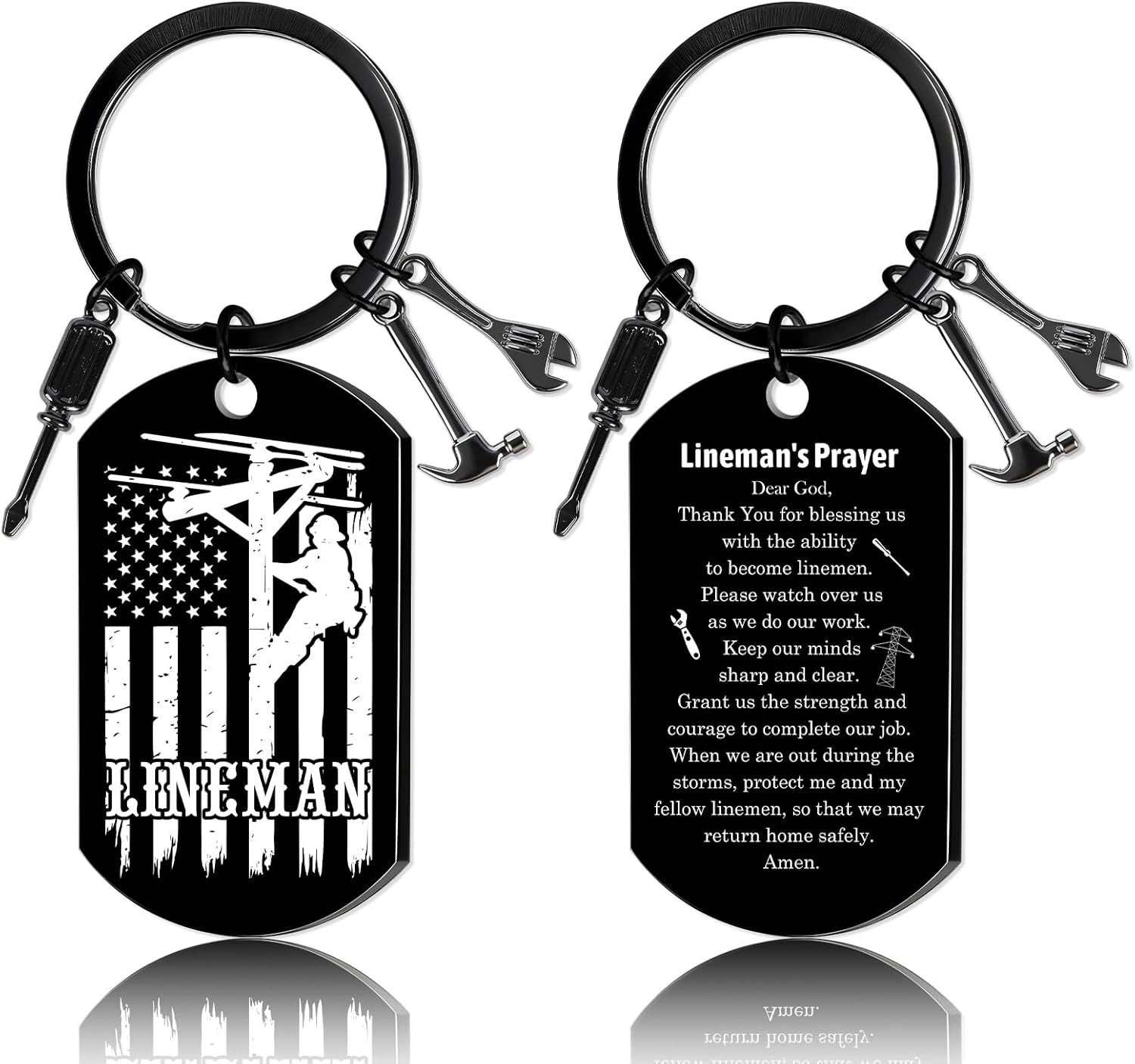 Lineman Gifts for Men - Linemans Prayer Keychain, Electrician Linemen Accessories for Dad Husband Boyfriend, Christmas Fathers Day Valentine's Day Retirement Thank You Appreciation Gifts