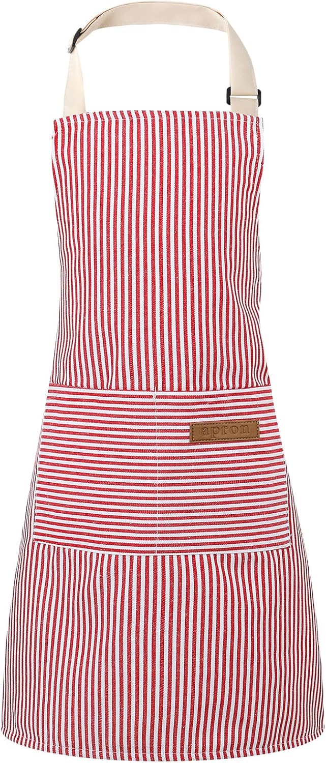Stripes Kids Apron, Kids Cooking Aprons with 2 Pockets, Cute Kids Aprons for Cooking for Boys and Girls