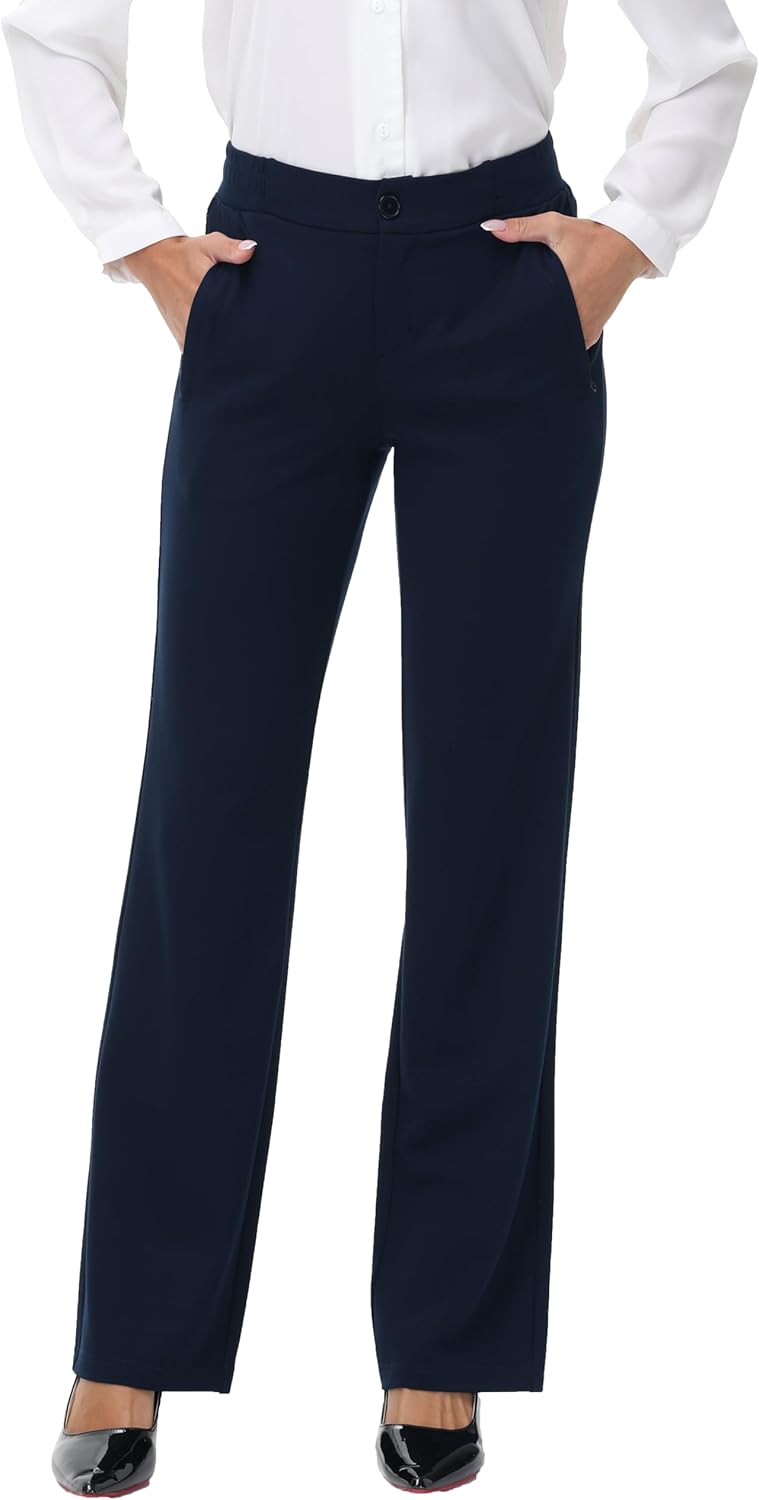 ZTN Womens 29"/31"/33" Business Casual Dress Pants Wide Straight Leg Trousers with Pockets