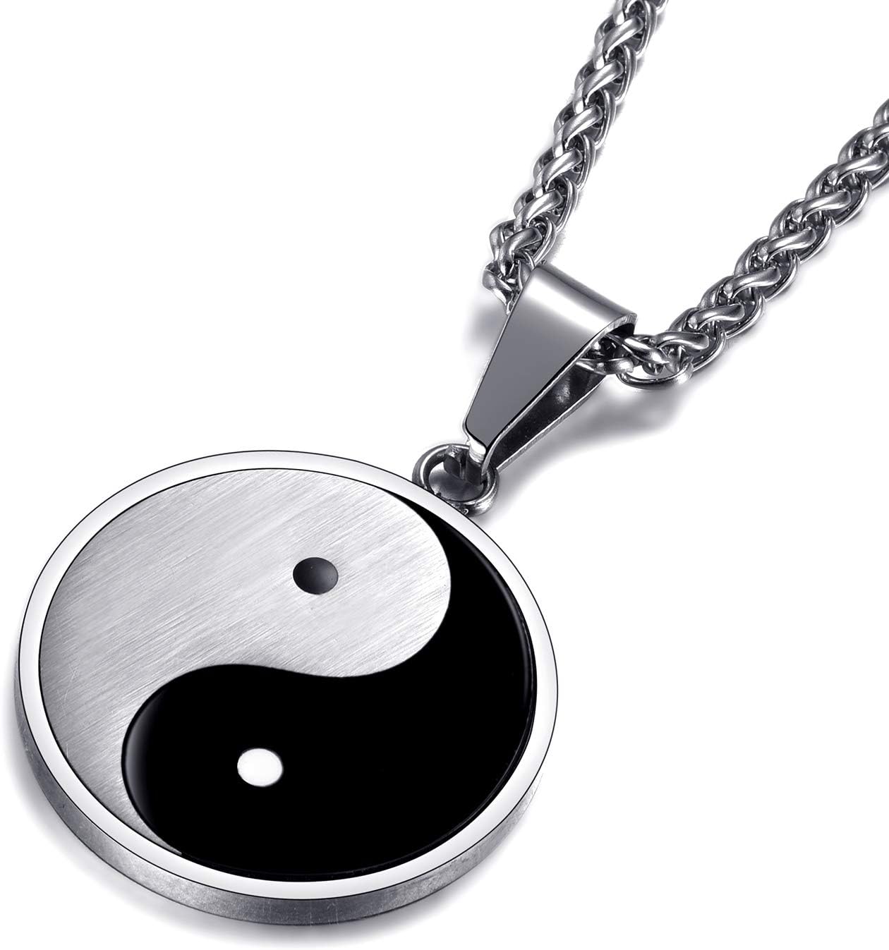 MOO&LEE Mens Pendant Necklace Amulet Jewellery Chain Small Yin Yang Taichi Pendant with 24 Inches Stainless Steel Link Chain