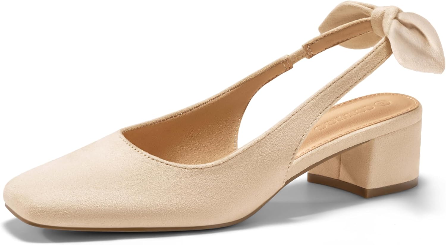 Coutgo Womens Chunky Low Heels Bow Slingback Pumps Closed Square Toe Wedding Party Dress Shoes