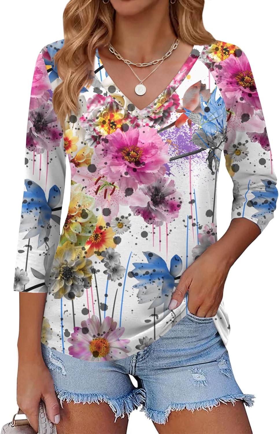 Zeagoo 3/4 Length Sleeve Womens Tops Casual V Neck Shirts Soft Basic Tees Business Work Blouses