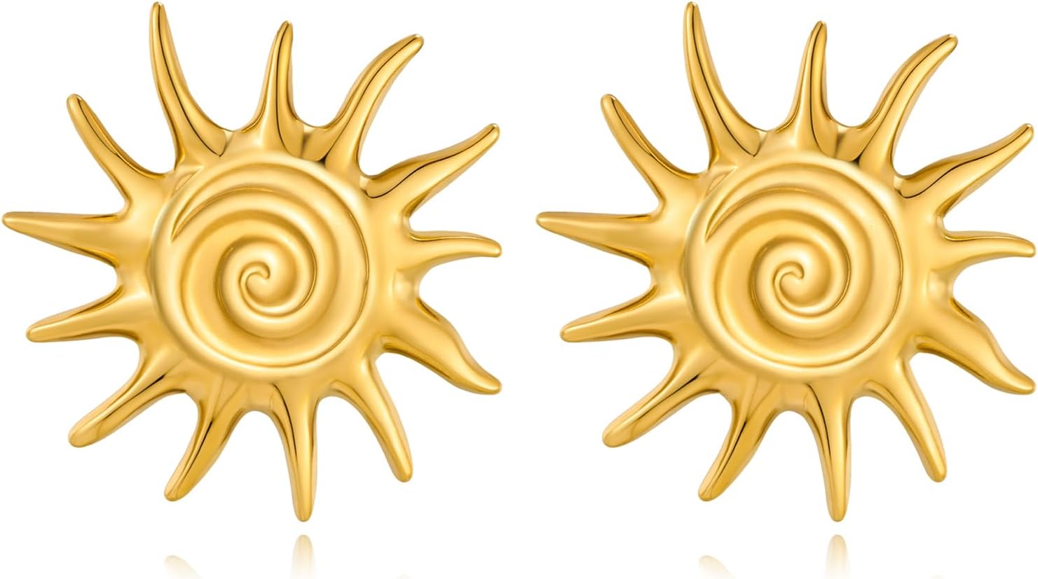 Chunky Gold Stud Earrings for Women Trendy Sun Earrings Hypoallergenic Earrings Fashion Jewelry