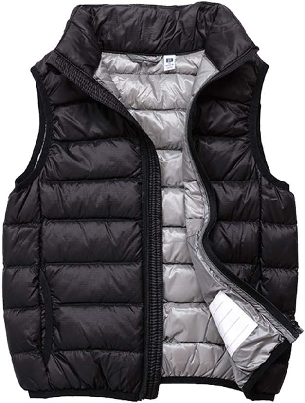 SK Studio Boys Girls' Light Weight Down Vest, Kids Lightweight Sleeveless Jacket, Boys Girls Puffer Down Vest Style 3 Black 160cm