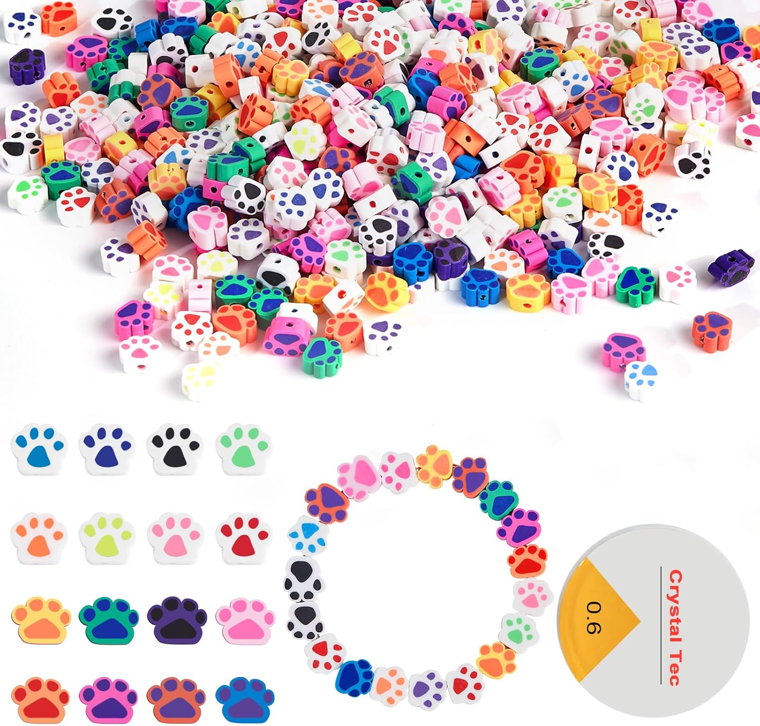 500 Pcs Cute Paw Print Polymer Clay Beads Charms for Crafts with Elastic String for Making Bracelet Necklace Craft Decoration DIY Crafts