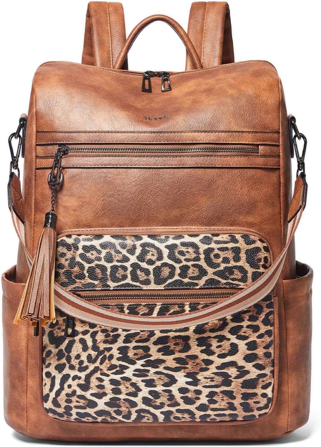 Shrrie 15.6 inch Laptop Backpack for Women,Large Leather Purse,Travel Backpacks Carry on,Water Resistant Casual Laptop Backpacks,College Backpack,Work Backpack for Women,Two-tone Camel Brown