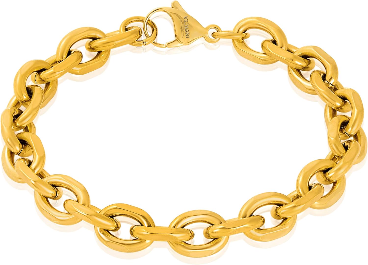 Invicta Bracelet for Men, Stainless Steel Chain Jewelry, Knife Edge Oval Link, 10.6mm, 8.75"
