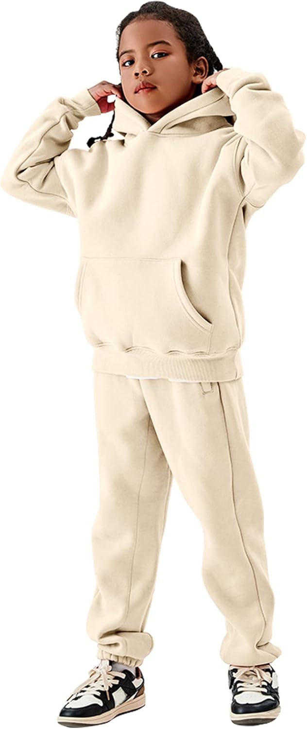 COZYPOIN Unisex Kids Fleece 2 Piece Outfits Girls Boys Hooded Sweatshirt and Jogger Sweatpants Sweatsuit Set for 5-14Y