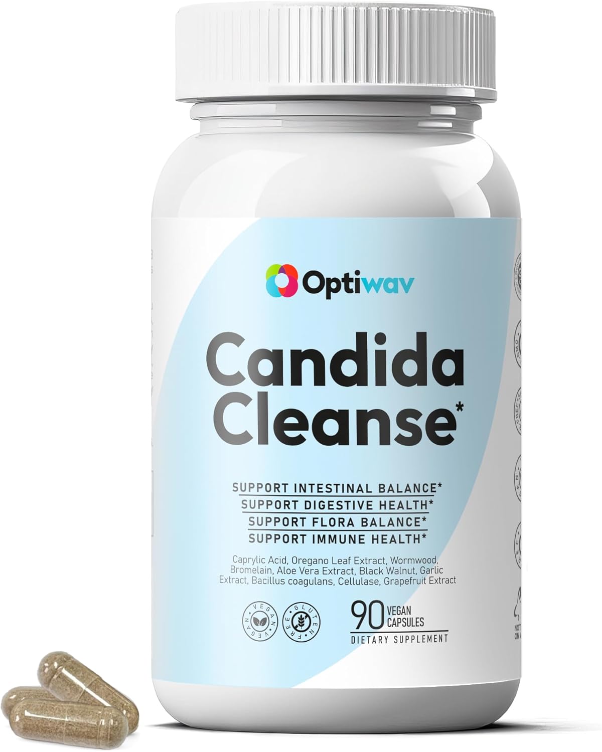 - Advanced Candida Cleanse with Probiotics and Enzymes: Optiwav Candida Cleanse combines Caprylic Acid, herbal extracts, digestive enzymes, and 15 Billion CFU of Bacillus coagulans in a synergistic complex designed to support candida cleansing and help manage candida and yeast overgrowth. This comprehensive blend helps maintain internal balance, reinforce natural detox processes, and encourage a healthier digestive environment for everyday wellness and long-term vitality.