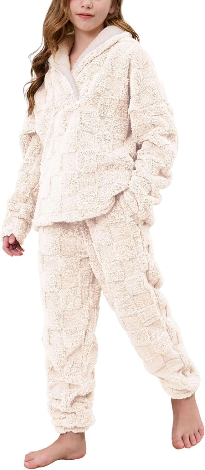 Lentta Girls Fleece Pants Sets Fuzzy 2 Piece Outfits Casual Warm Pullover Top Sweatshirt Sweatsuit with Pockets 5-14Y