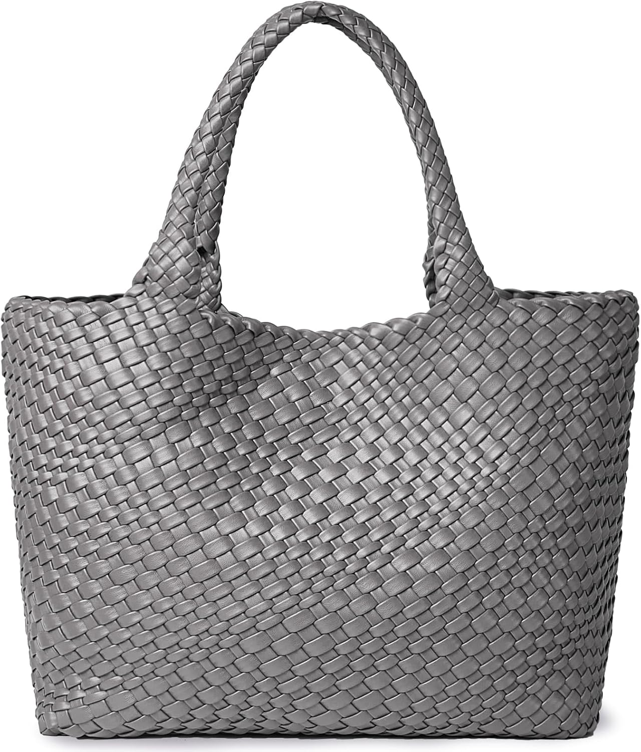 Woven Shoulder Bag for Women, Fashion Top Handle Soft Vegan Leather Shopper