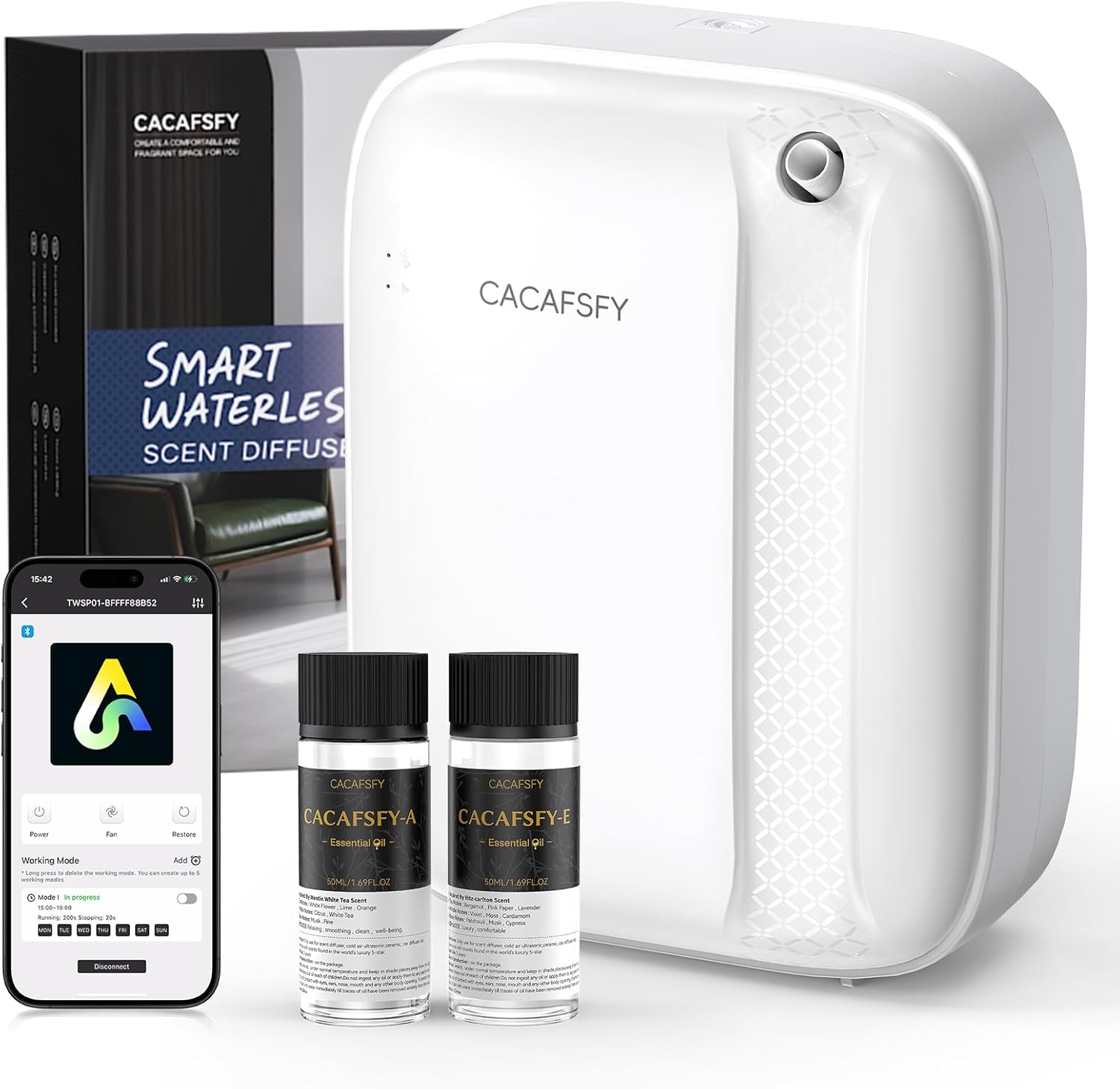 Waterless Essential Oil Diffuser,(2 * 50ml Fragrances Included) 3000 Sq.Ft Coverage 400 ml Large Capacity Hotel Scent Diffuser,Cold Air Tech, App & Button Control,Scent Diffusers for Home Large Room