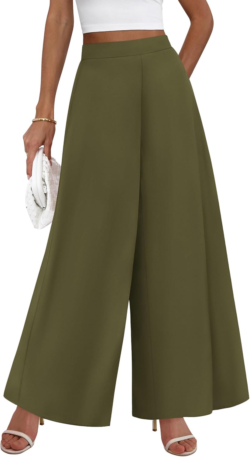 KIRUNDO Palazzo Pants for Women Dressy 2026 Spring Slacks Wide Leg High Waisted Business Casual Work Trousers with Pockets