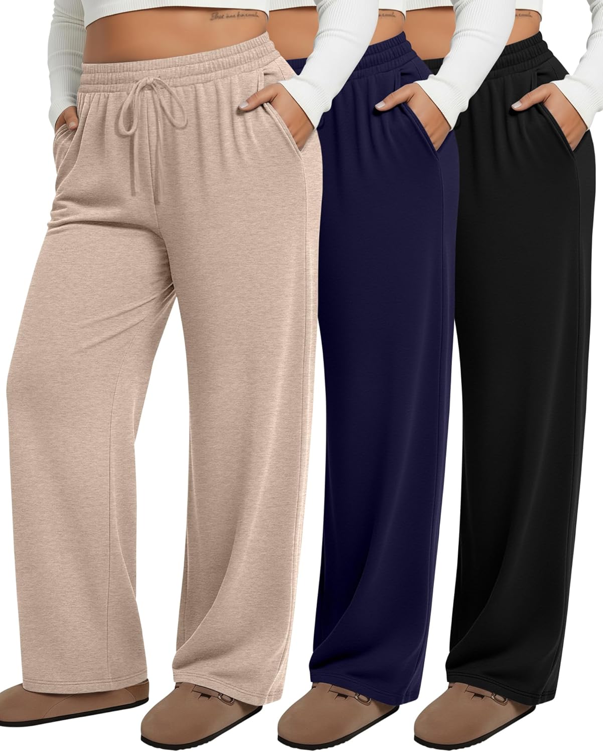 Neer 3 Pack Women's Plus Size Sweatpants Wide Leg High Waist Drawstring Yoga Lounge Joggers Open Bottom Pants with Pockets