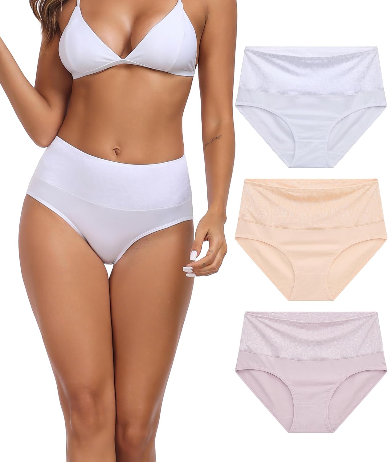 ANLIQI Womens Briefs Cotton Underwear High Waisted Tummy Control Hipster Panties Pack Full Coverage Soft Breathable Undies