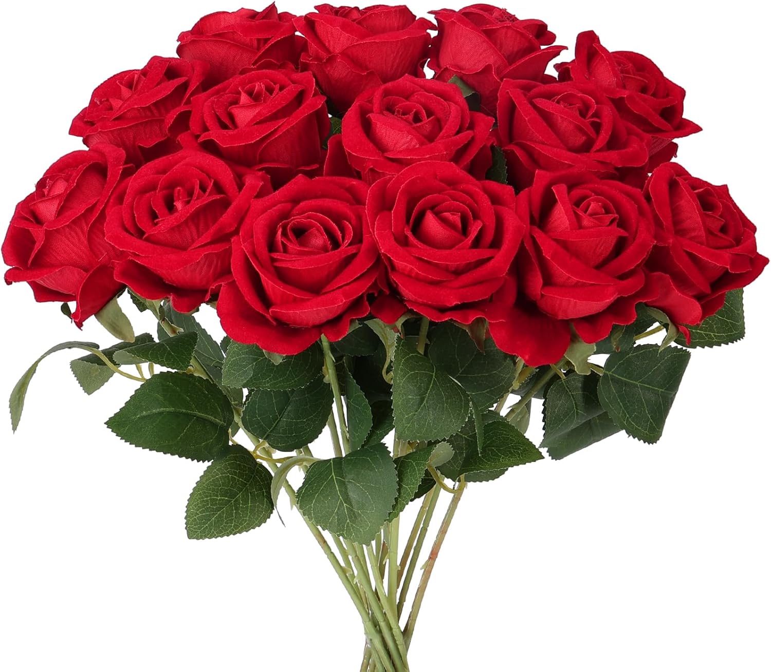 - Realistic Look Artificial Roses: Our red artificial flowers feature velvet silk petals with distinct layers, ultra-smooth, burr-free edges, and a firm structure to maintain a perfectly bloomed shape. Lifelike leaves mirror the texture of real foliage, making these red roses bouquet incredibly close to the appearance of true blooms