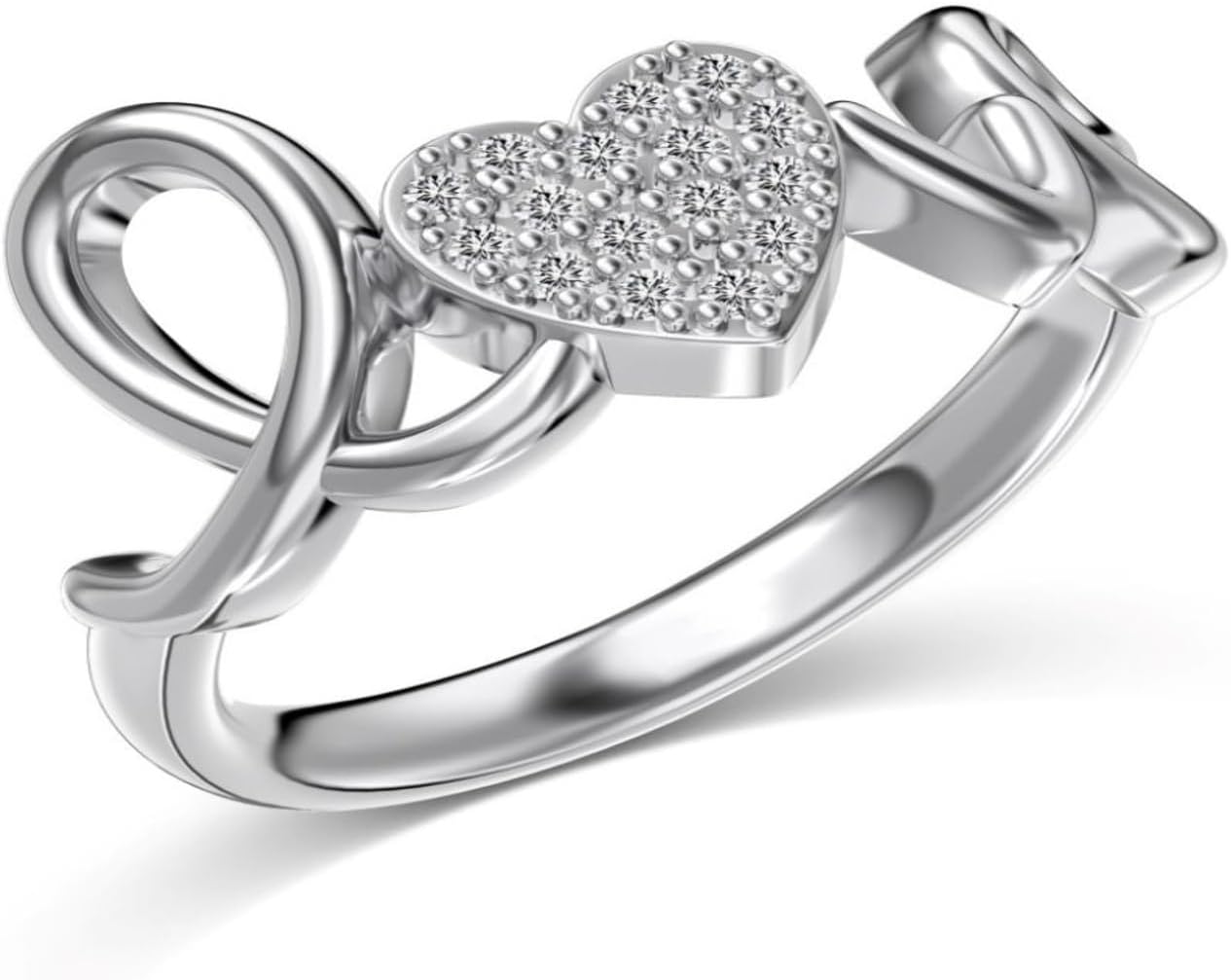 LOVE Sterling Silver Heart Ring with Cubic Zirconia, 925 Silver, Rhodium Plated