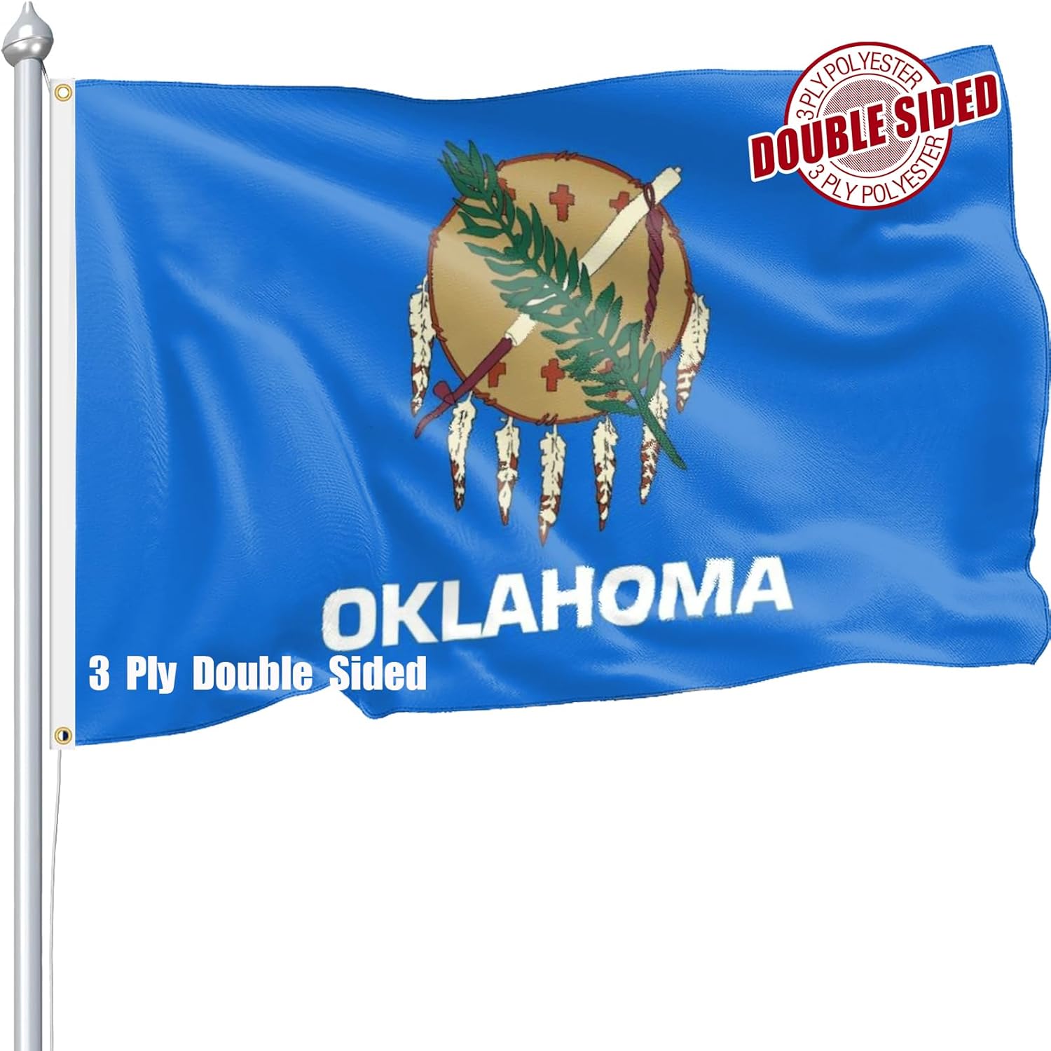Oklahoma Flag 3x5 FT Sturdy for Outside, Heavy Duty 3Ply Polyester Oklahoma State Flags Outdoor, Double Sided Long Lasting OK State Flag Brass Grommets