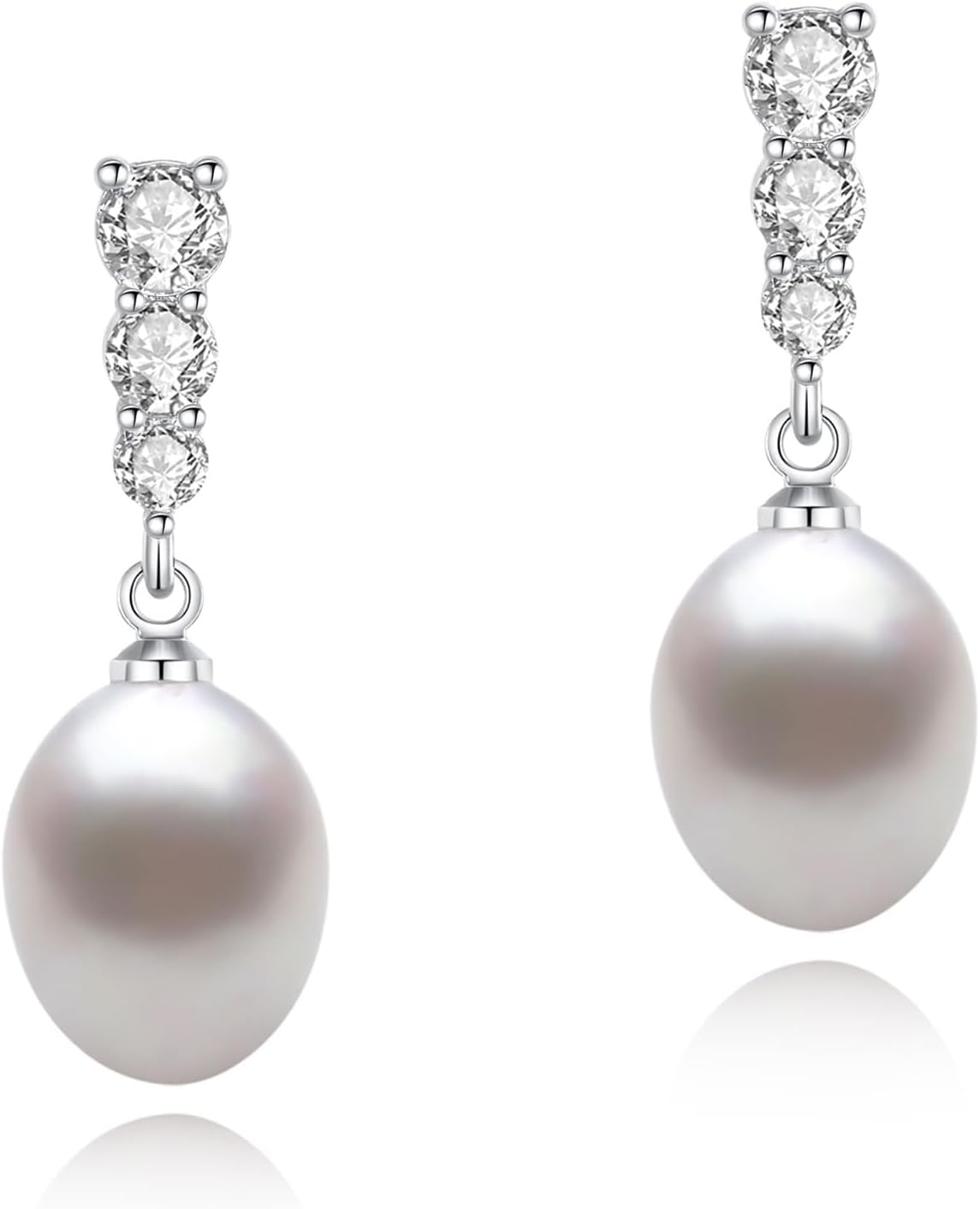 Pearl Drop Earrings, Saltwater Cultured Pearl, 925 Sterling Silver Dangle Earrings with Cubic Zirconia Diamonds, White Gold Plated Jewelry Gifts for Women
