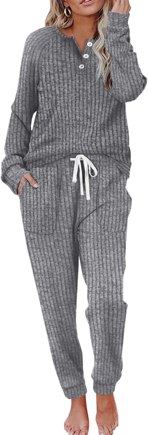 WIHOLL Two Piece Outfits for Women Lounge Sets Button Down Sweatshirt Sweatpants Sweatsuits Set with Pockets