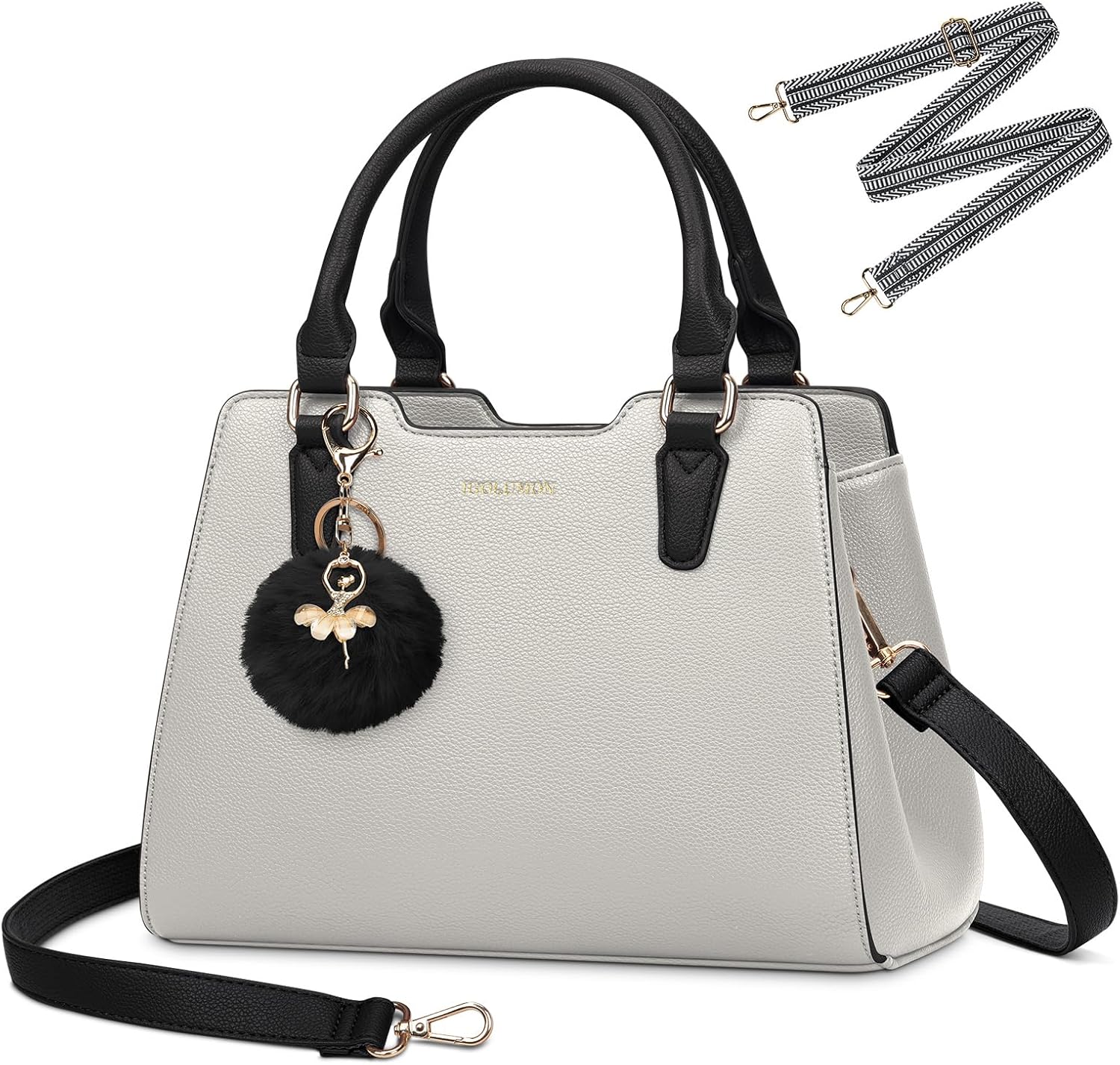 IGOLUMON Women's Top-Handle Handbags PU Vegan Leather Satchel Purses for Women Designer Tote Purse Handbag with Cute Pompom