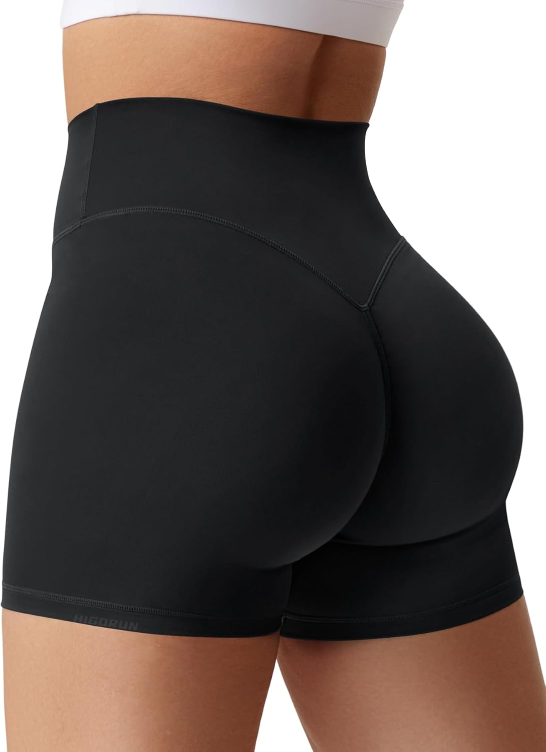 HIGORUN Gym Workout Shorts for Women 4.5" High Waisted Hidden Scrunch Tummy Control Biker Shorts Athletic Running Yoga