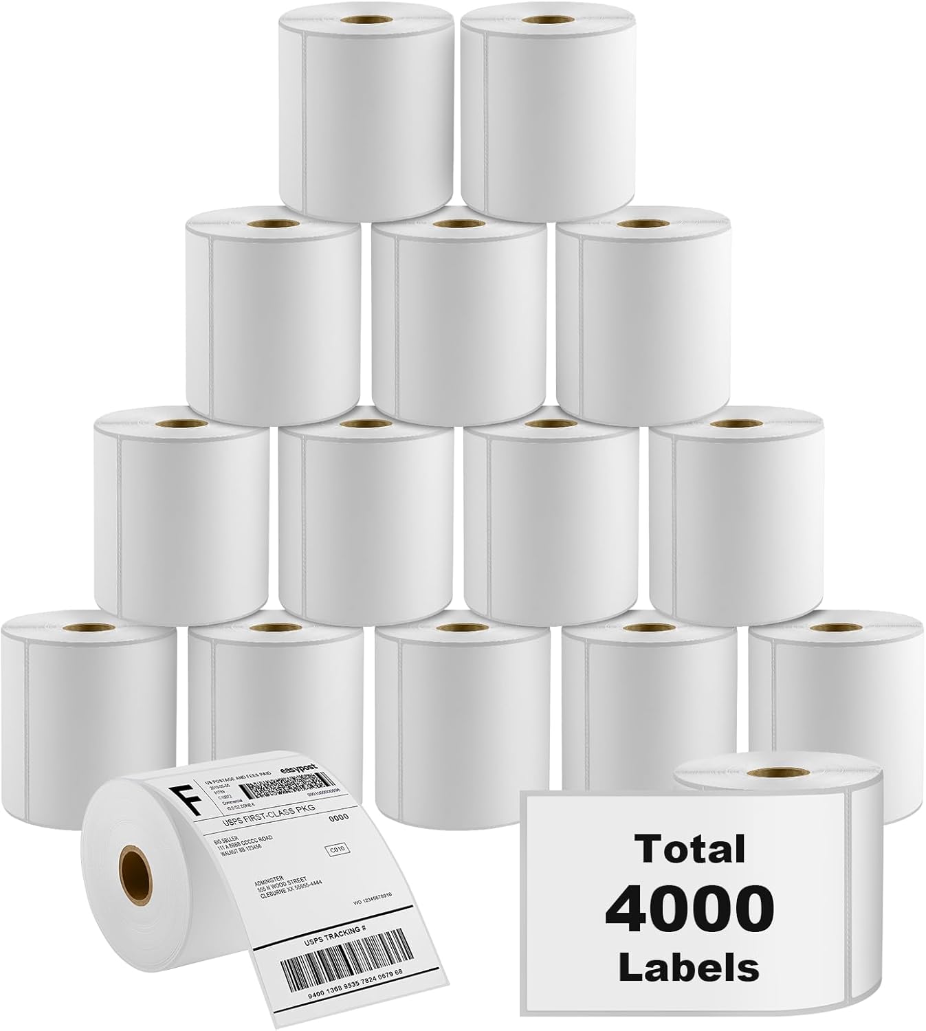 MaxGear 4" x 6" Direct Thermal Labels, 4000 Pcs/16 Rolls, Perforated White Mailing Shipping Package Labels, Commercial Grade, Permanent Adhesive, Compatible with Most Thermal Printers