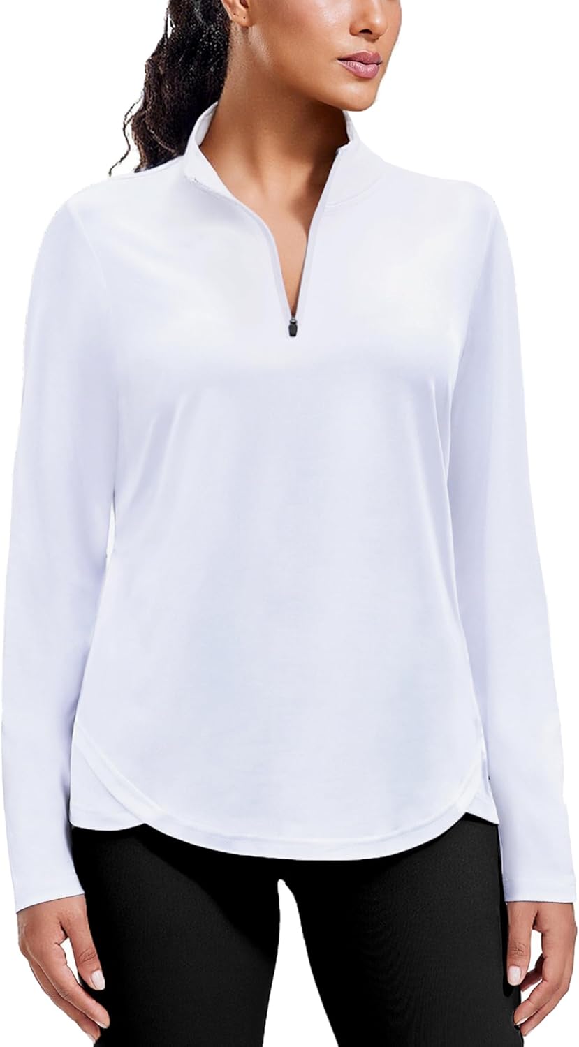 PINSPARK Workout Tops for Women Long Sleeve Athletic Shirt Quarter Zip Running Shirts Stretchy UPF 50+ Yoga Hiking Tee Top
