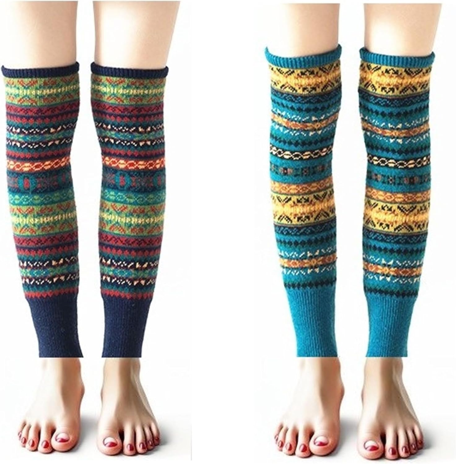 2 Pairs Leg Warmers for Women, Boho Bohemian Style Cable Knitted Thicker Warm in Winter for Party Sports,
