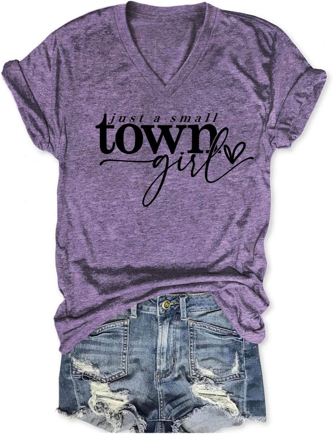 A Small Town Girl Tshirts for Women Country Travel T Shirts Funny Short Sleeve V Neck Tees Summer Casual Tops