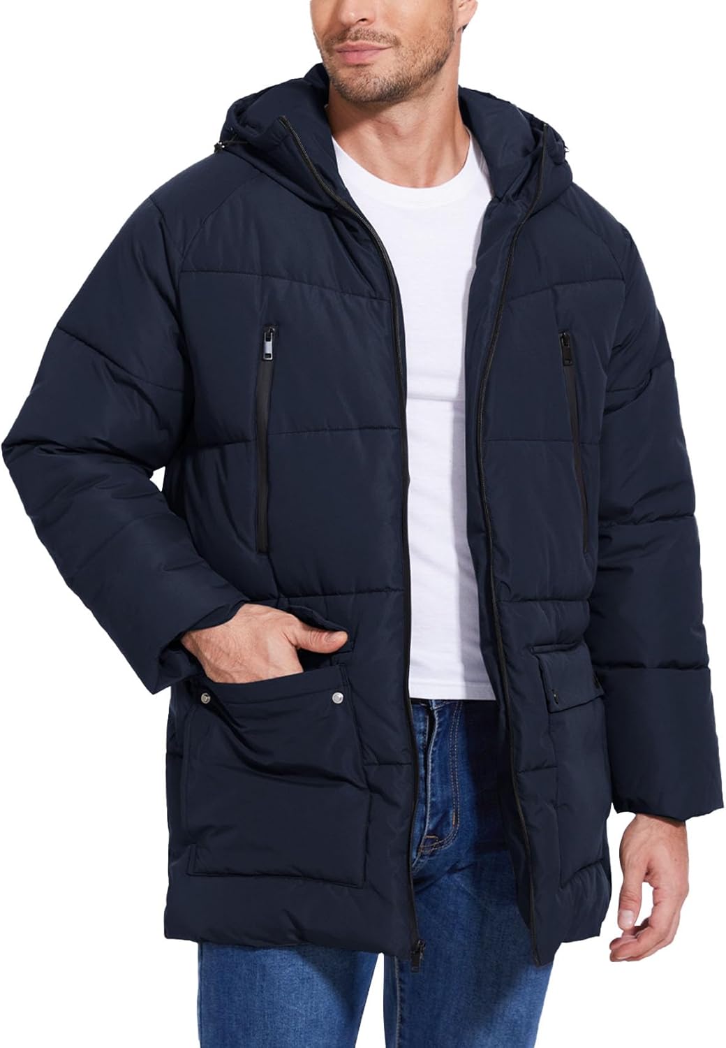 Flygo Men's Long Parka Winter Coats Hooded Puffer Jacket Heavy Warm Water-Resistant Outerwear Cold Weather