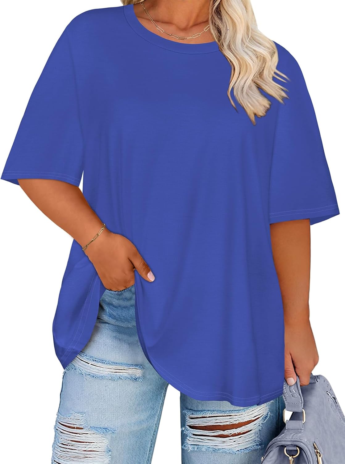 rosemia Plus Size Tshirts for Women Oversized Casual Tees Crewneck Short Sleeves Blouses