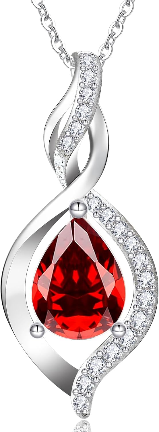 RIVIKO Valentines Day Gifts for Her-Infinity Birthstone Necklace for Women,925 Sterling Silver Teardrop Necklace, Womens Jewelry Birthday Gifts for Women Friend Her Mom Wife Lady