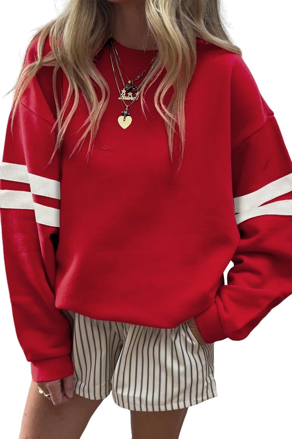 EARKOHA Women Oversized Sweatshirt Crewneck Striped Drop Shoulder Long Sleeve Color Block Pullover Tops