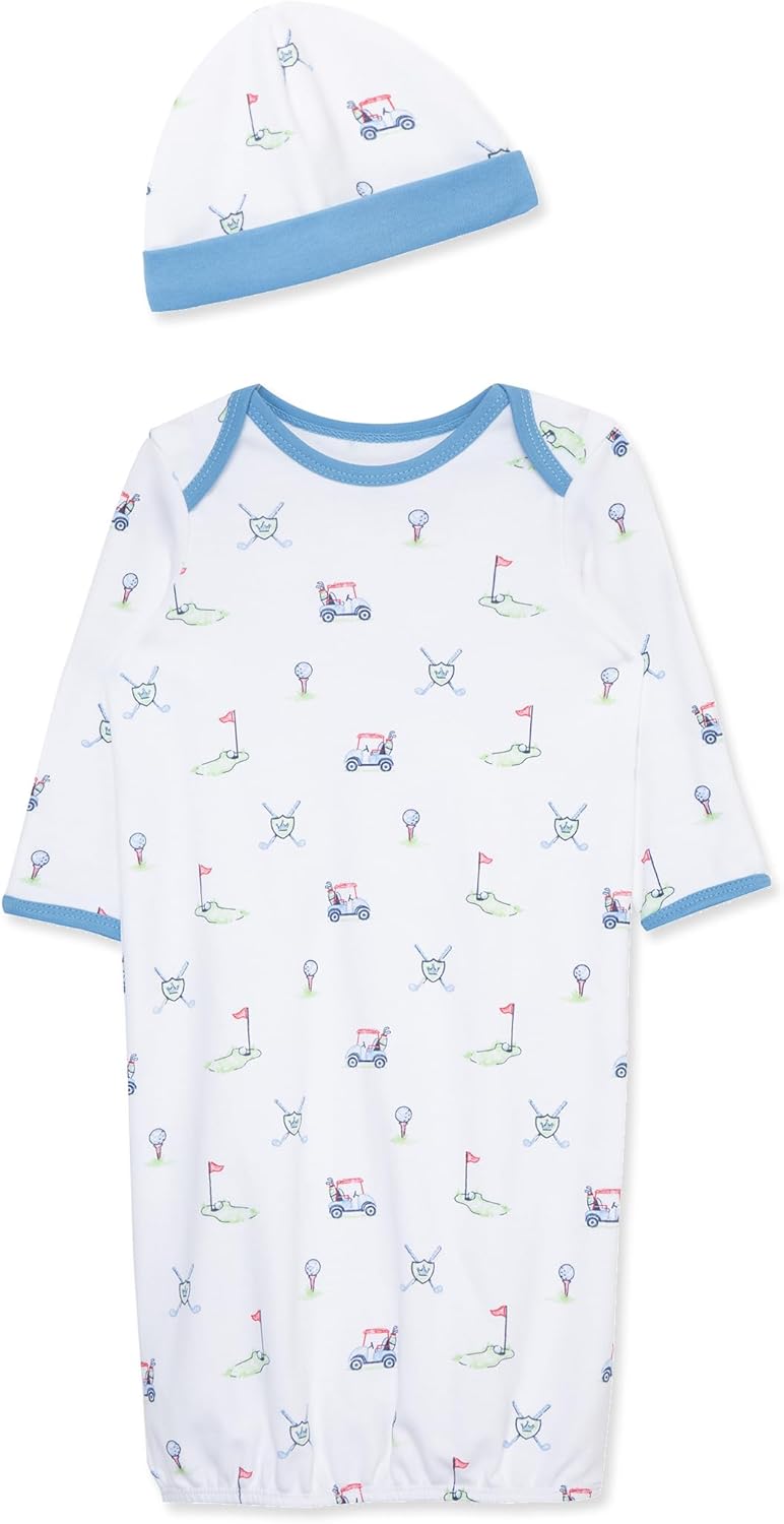 Little Me Clothes for Baby Boys' 2-Piece Nightgown and Cap Set 100% Cotton with Elastic Bottom, Baby Essentials, 0-3 Months